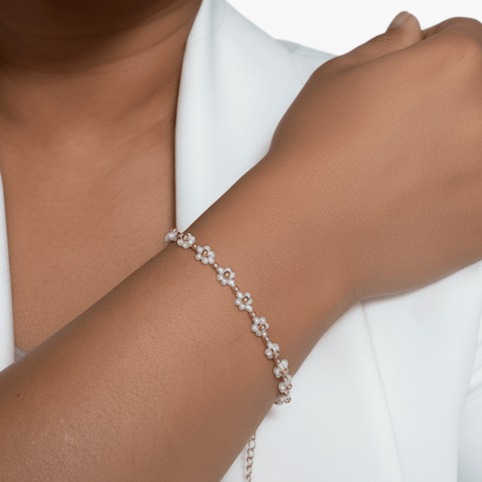 Handmade White Daisy Beaded Flower Bracelet - Gold or Silver