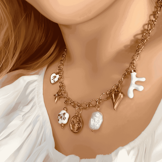 Use our live builder to design a custom charm necklace that carries every milestone, initial or symbol that matters to you. Start with the chain length you love, then drag and drop from 600+ charms—letters, birth-month stones, icons, engraving blanks and more.