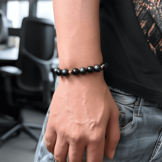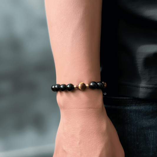Men’s Protection Bead Bracelet – Black Agate with Tiger’s Eye Accent